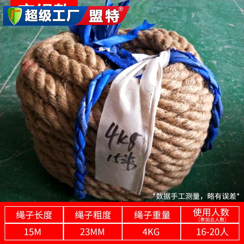 麻绳款拔河绳是一种常用于拔河比赛的器材,它采用天然麻绳制成,具有耐磨损、高强度和环保的特点。下面将详细介绍麻绳款拔河绳的规格参数和注意事项。 麻绳款拔河绳的设计和规格因品牌和需求而有所差异,以下为一般的规格参数: - 材质:麻绳款拔河绳采用天然麻绳制作,具有环保、耐磨损和较高的拉力。 - 长度和直径:拔河绳的长度通常在30至50米之间,直径在2至3厘米之间,以适应不同参赛队伍的数量和实力。 - 拉力:拔河绳的拉力强度是非常重要的参数。通常会有标注的最大拉力,参赛队伍需要根据队伍的人数和实力选取适合的拉力等级。 在使用麻绳款拔河绳时,需要注意以下几个方面: - 安全性:在比赛前检查拔河绳是否有明显的损坏、破裂或磨损。如发现有破损,应及时更换,以确保安全的比赛环境。 - 手部保护:由于麻绳相对粗糙,可能会对手部产生摩擦和磨损。参赛队伍可以使用手套或绷带来提供额外的保护,防止手部受伤。 - 姿势正确:参赛队伍需要学习正确的拔河姿势和技巧,如脚踩稳固、身体平衡、手握牢固等,以提高比赛效果和避免运动伤害。 - 准备工作:在比赛前,需要将麻绳款拔河绳正确布置在比赛场地上,确保它没有杂物或障碍物,以免影响比赛的进行。 - 规则遵守:拔河比赛有一套严格的规则,如队伍人数、起点和终点、比赛时间等。参赛队伍领导者和裁判员需要熟悉并确保规则的执行。 总之,麻绳款拔河绳是一种常用于拔河比赛的器材,采用天然麻绳制作,具有耐磨损、高强度和环保等特点。麻绳款拔河绳的规格参数包括材质、长度、直径和拉力等方面,可以根据比赛需求选择合适的绳索。在使用麻绳款拔河绳时,需要注意安全性、手部保护、姿势正确、准备工作和规则遵守等注意事项。只有正确使用拔河绳,遵守规则,才能确保比赛的顺利进行,并提高参赛队伍的比赛效果和团队合作精神。